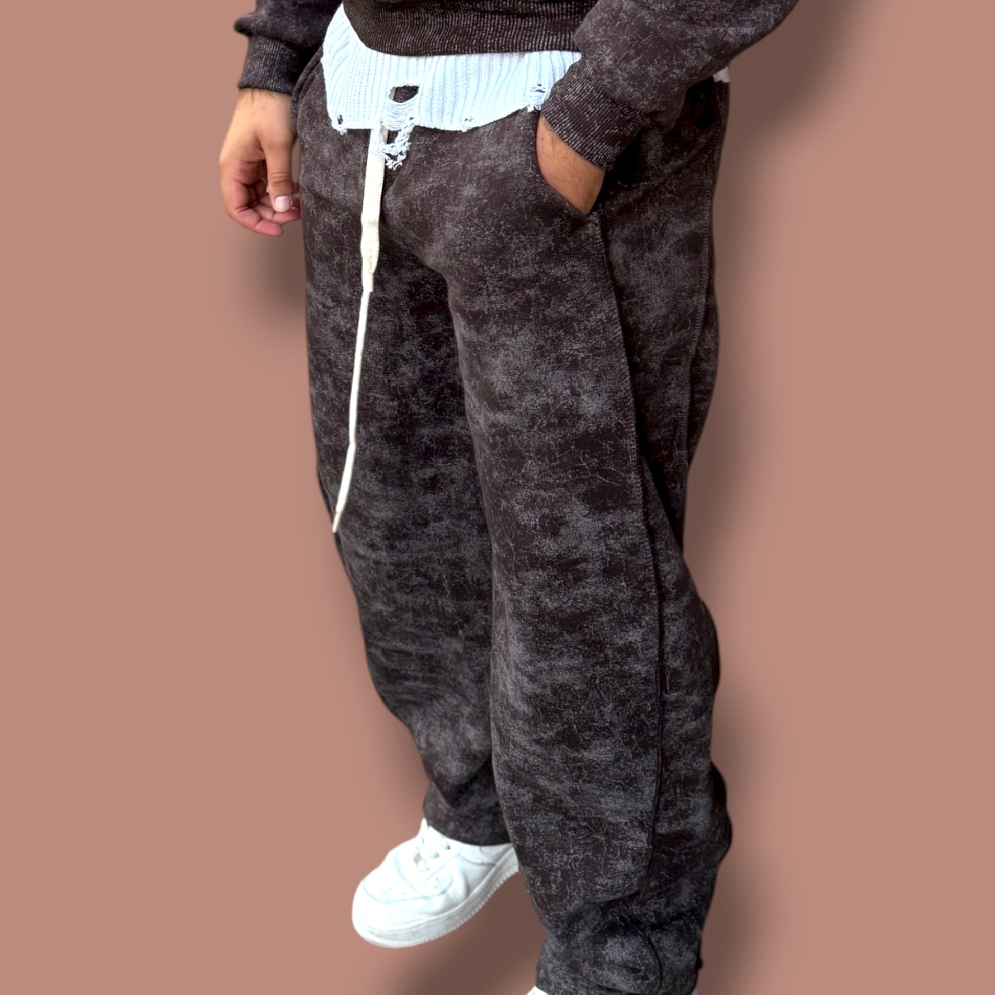 Pantalone felpato con fondo ampio completo in stile WOOD. Realizzato con materiali di alta qualità, garantisce calore e comfort durante i giorni più freddi. Perfetto per un look casual e alla moda.