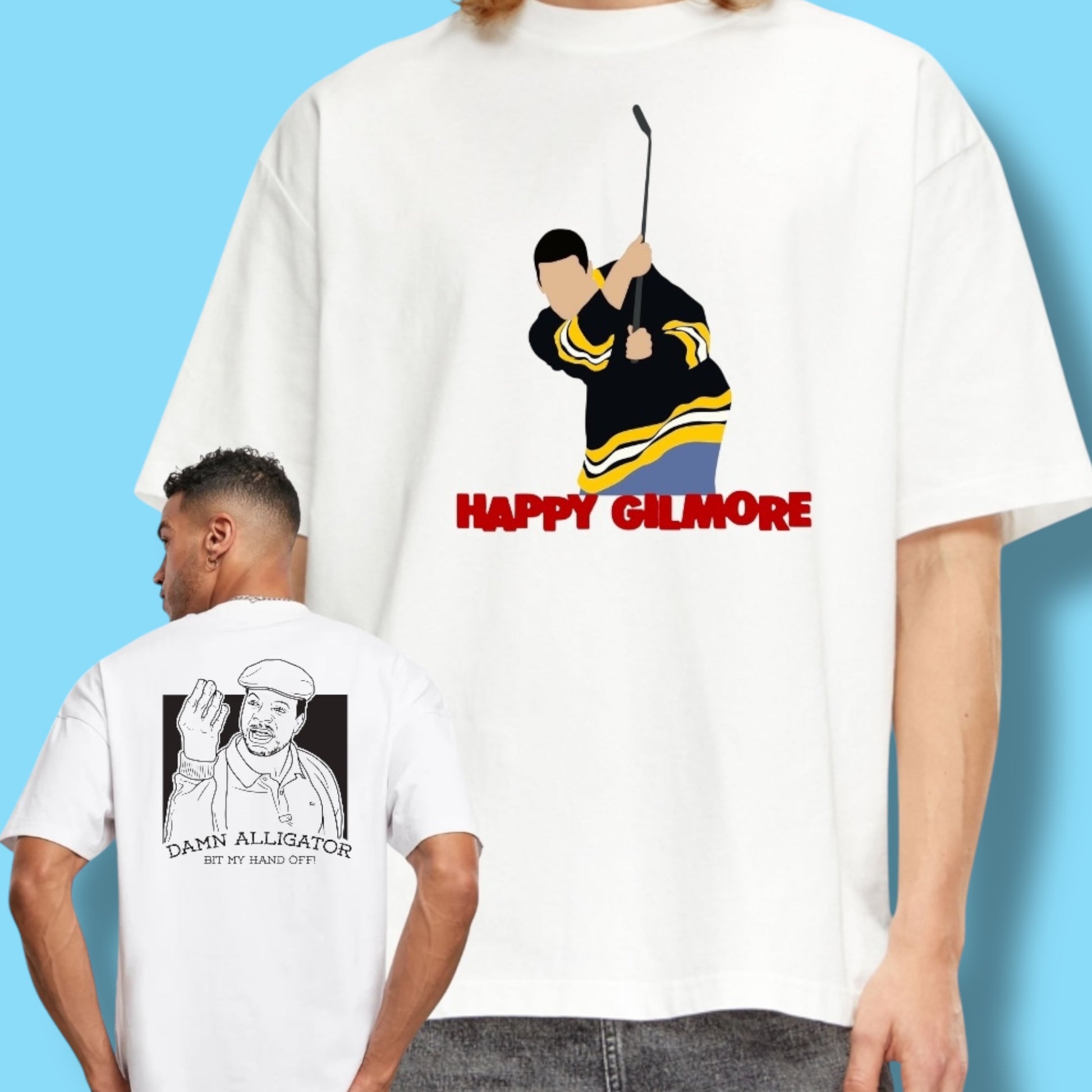 Aggiorna il tuo guardaroba con la maglietta "DAMN ALLIGATOR" 🐊⛳️ ispirata al film cult di ADAM Sandler "HAPPY GILMORE". Realizzata in morbido cotone e dal design accattivante, sarà la scelta perfetta per gli appassionati del film e del golf.